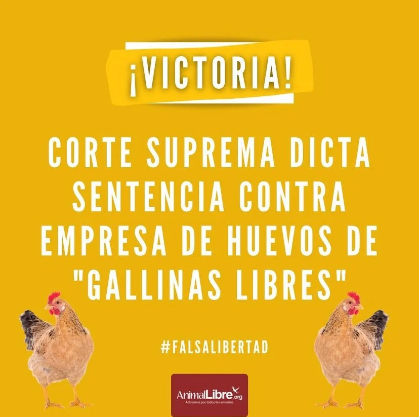 The media is already covering our victory against a poultry farm that sold “free-range” eggs, which was declared illegal and harmful to the environment. All because of our #FalsaLibertad.