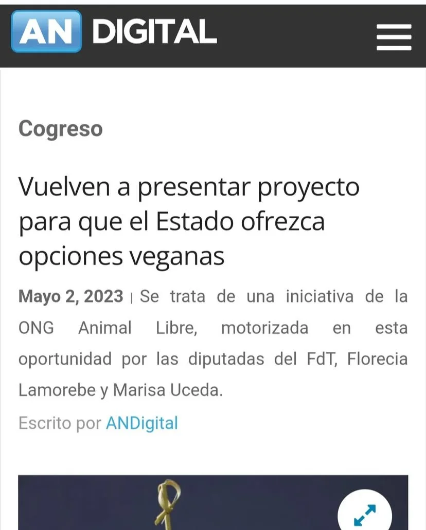 📣 "Para la ONG Animal Libre es un gran avance que agradecemos porque hemos informado la necesidad de que parte de la población está llevando una alimentación más basada en plantas para mitigar los efectos de las crisis económica mundial".- María Paz Orrego, Vicepresidenta y Directora de Estudios de la ONG.