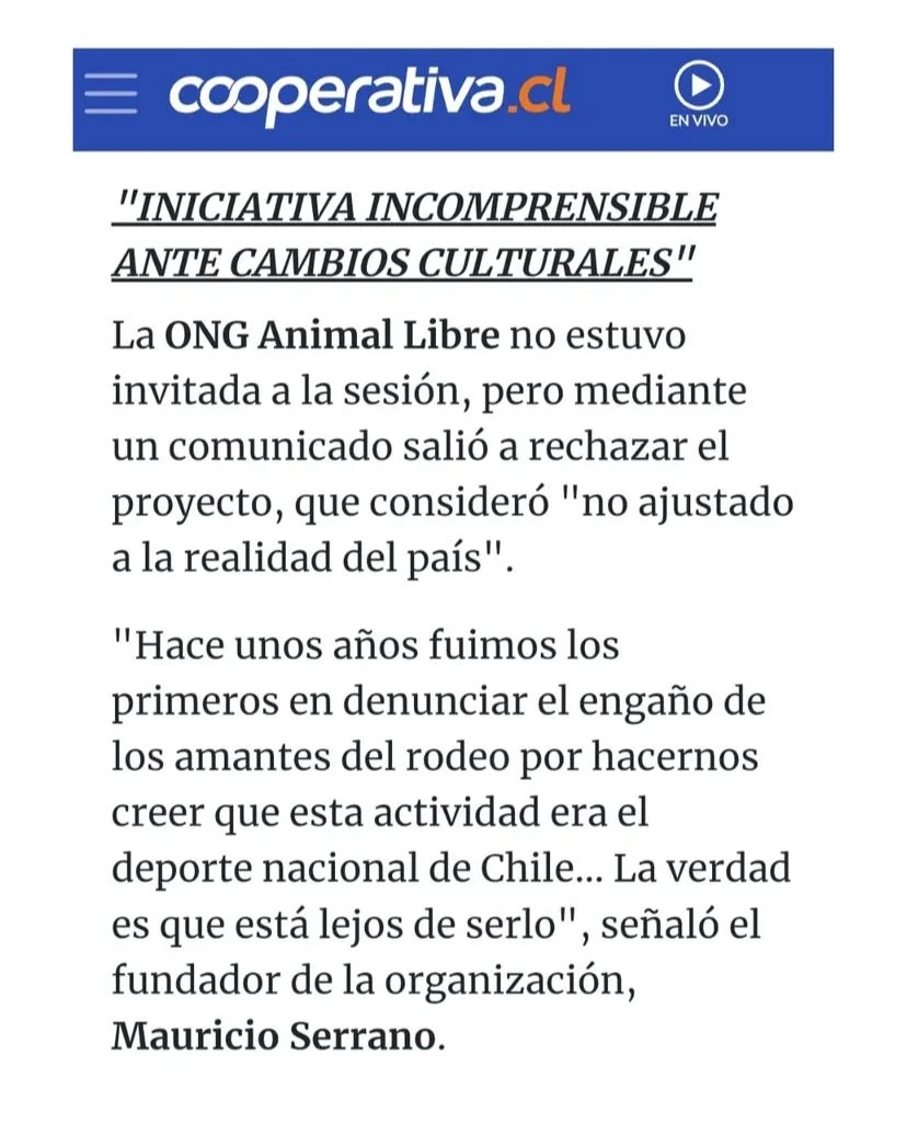 📢 Estamos en prensa, denunciando el proyecto de ley que declara al rodeo deporte nacional.