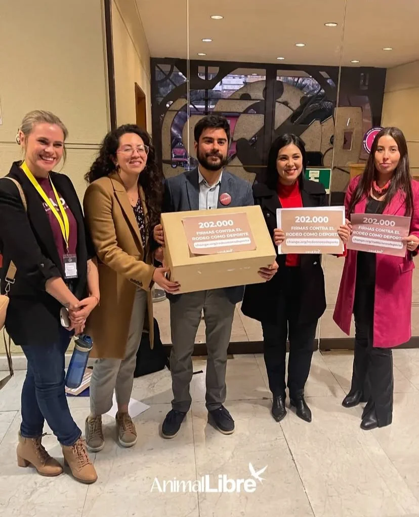 ✊ We submitted over 200,000 signatures against classifying rodeo as a national sport to the Commission of Agriculture during the discussion of a bill on the matter. Our founder @mauricioserranopalma, spoke about the need to defend animals and that the majority of people are against rodeo.