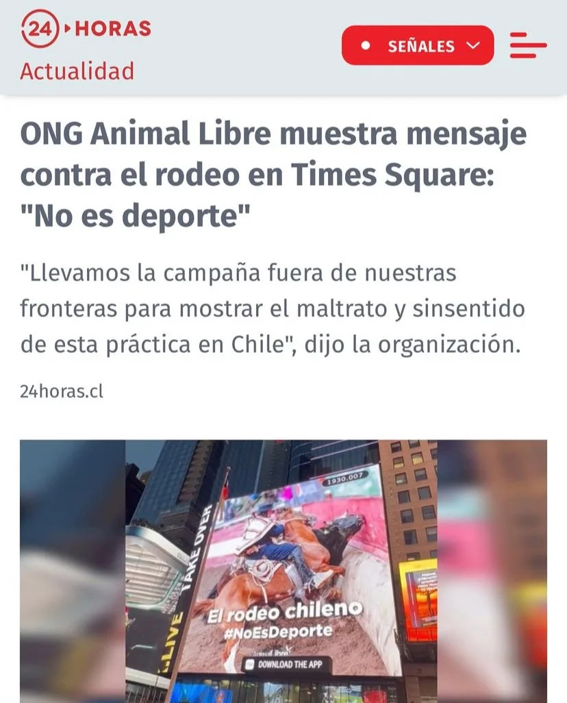 ‼️Media outlets are already covering the billboard we put up as @animallibre in Times Square to expose the mistreatment that some people seek to legitimize by recognizing rodeo as Chile’s national sport.